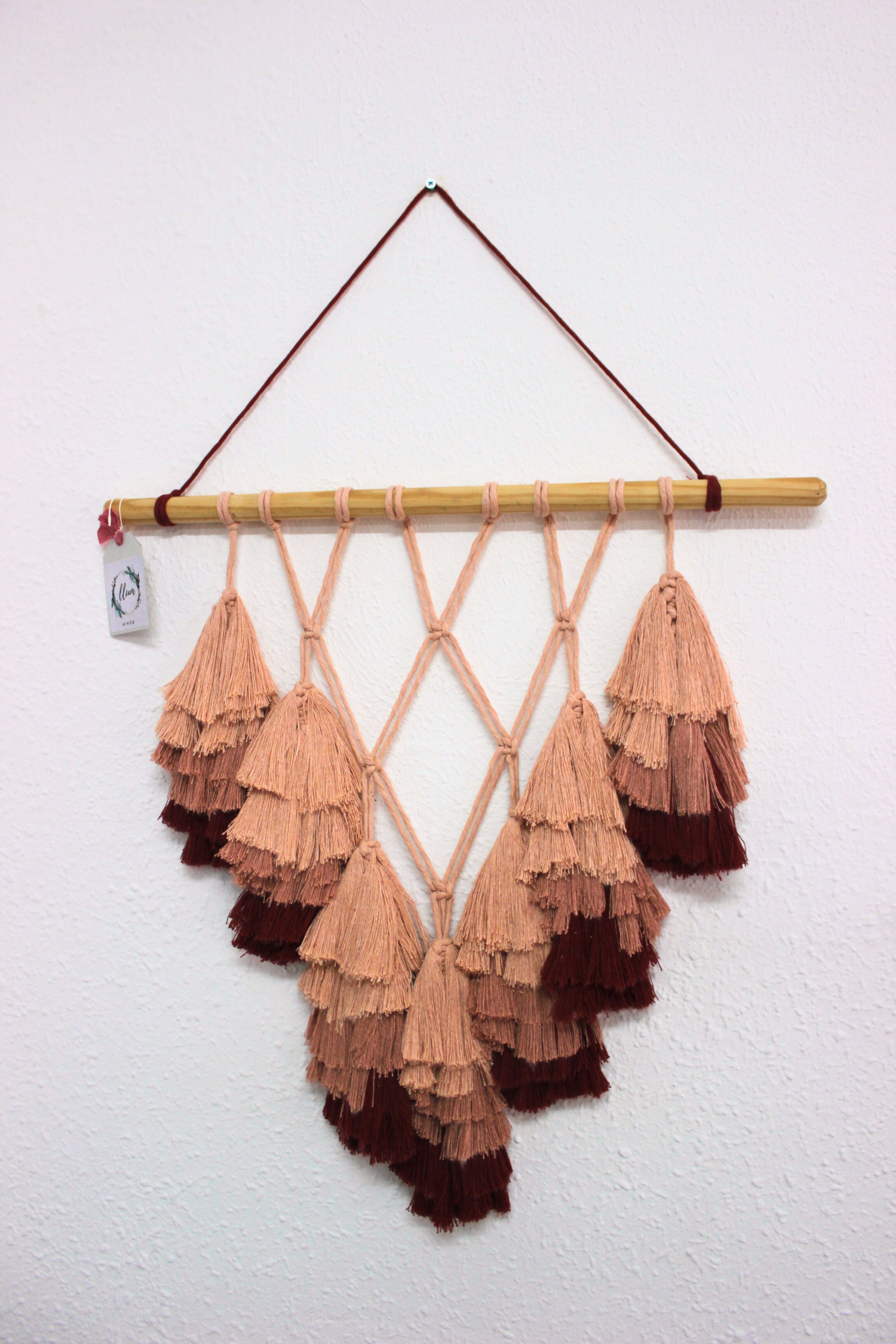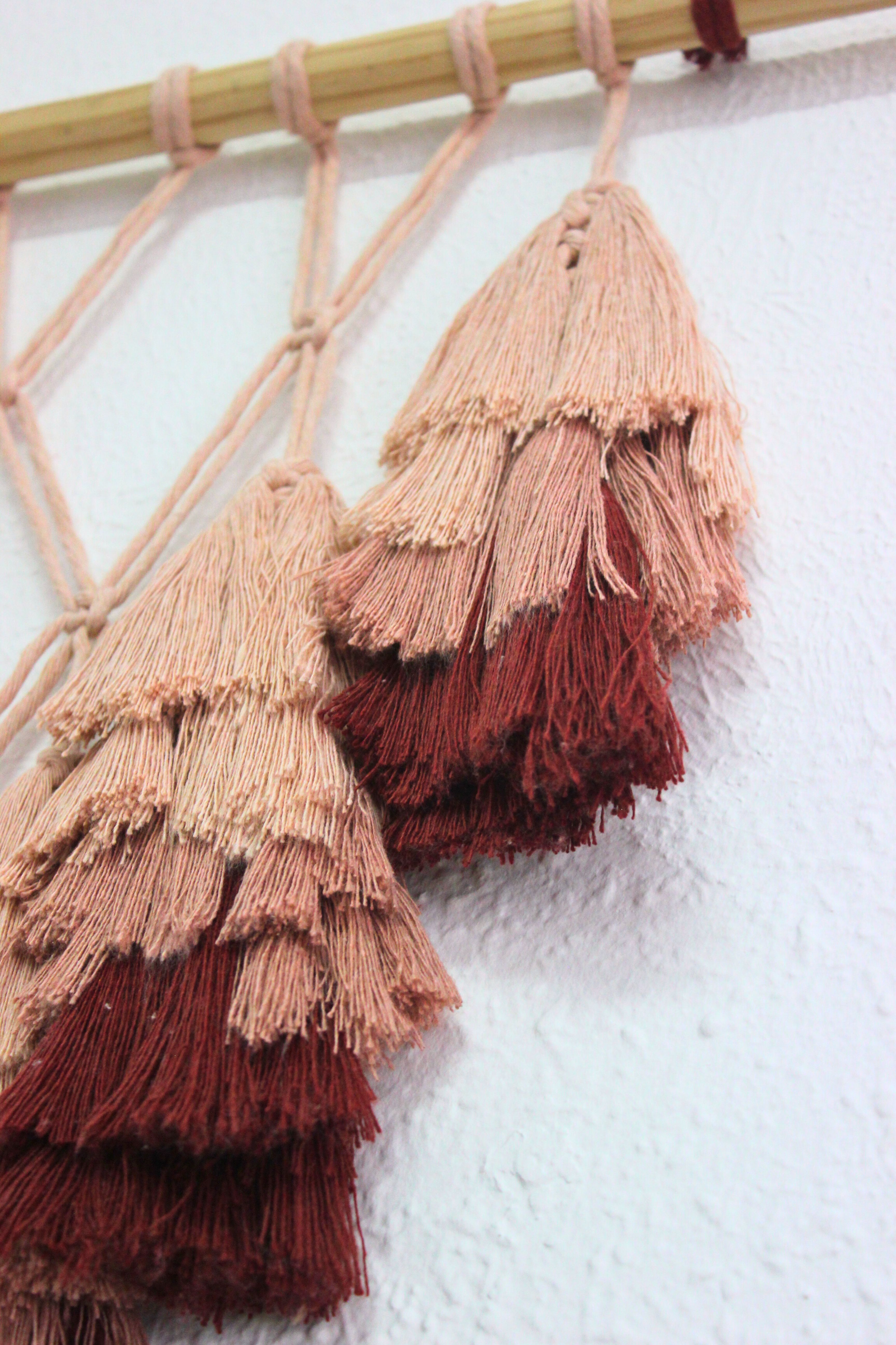 Tapiz de flecos en tres colores. Con posibilidad de añadir estantería. Medidas aproximadas: 60x60cm. Precio: desde 60€.